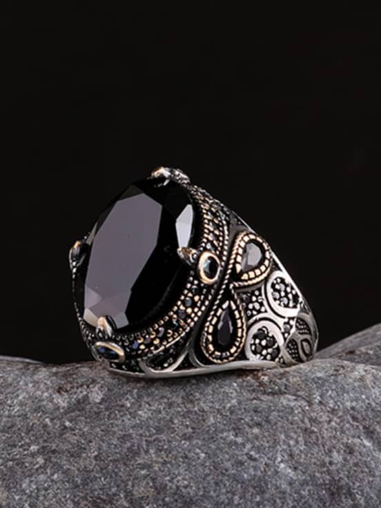 تصميم أنيق من فضة 925، مرصّع بحجر يشعّ فخامة وهيبة في كل ضوء ✨