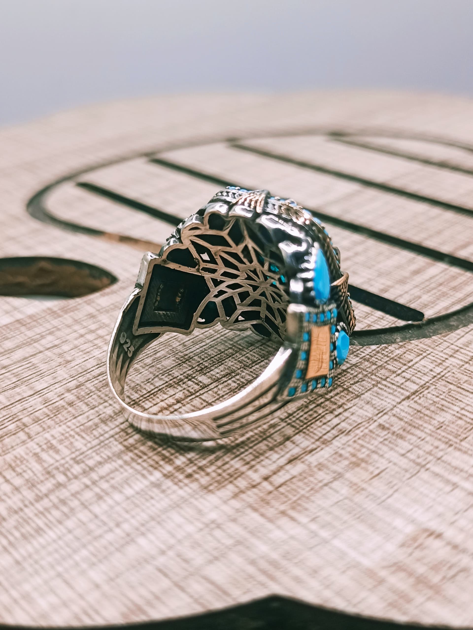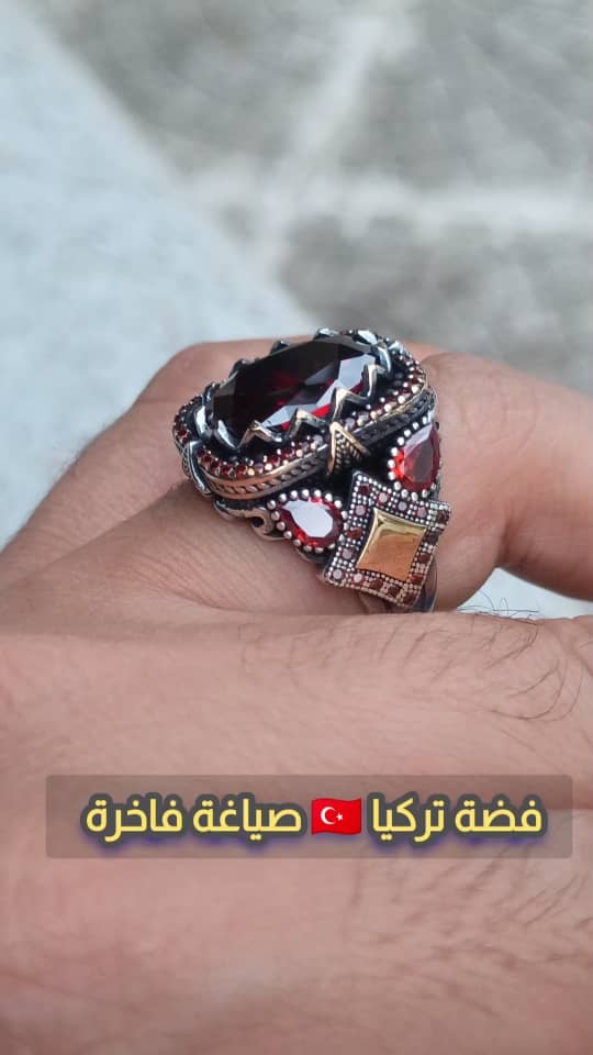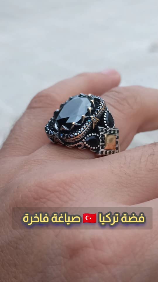 خاتم رجالي أنيق مصنوع من فضة 925 بتصميم عثماني فاخر،