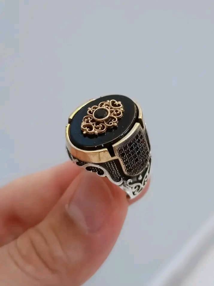 بتصميم تاج السلطان العثماني، مصقول بإتقان، مزوّد بحجر لامع اسود جذاب.